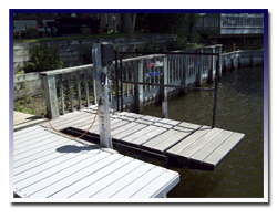 After thinking about the problem, Mr. Peter set out to come up with a solution to this problem. The first idea which Mr. Peter came up with, was a set of stairs that would self adjust to a floating dock. After building a set of these stairs it became apparent, the stairs, as designed, would not work. After about 6 months of redesigning the stairs, a new set was manufactured. The new design utilized the use of PWC boat lifts. These lifts allow the Hide-A-Step to adjust to the changing water levels during the summer. Not only does the Hide-A-Step make it easier to get on or off your boat, but it also gives the user Easy Access to the Water.